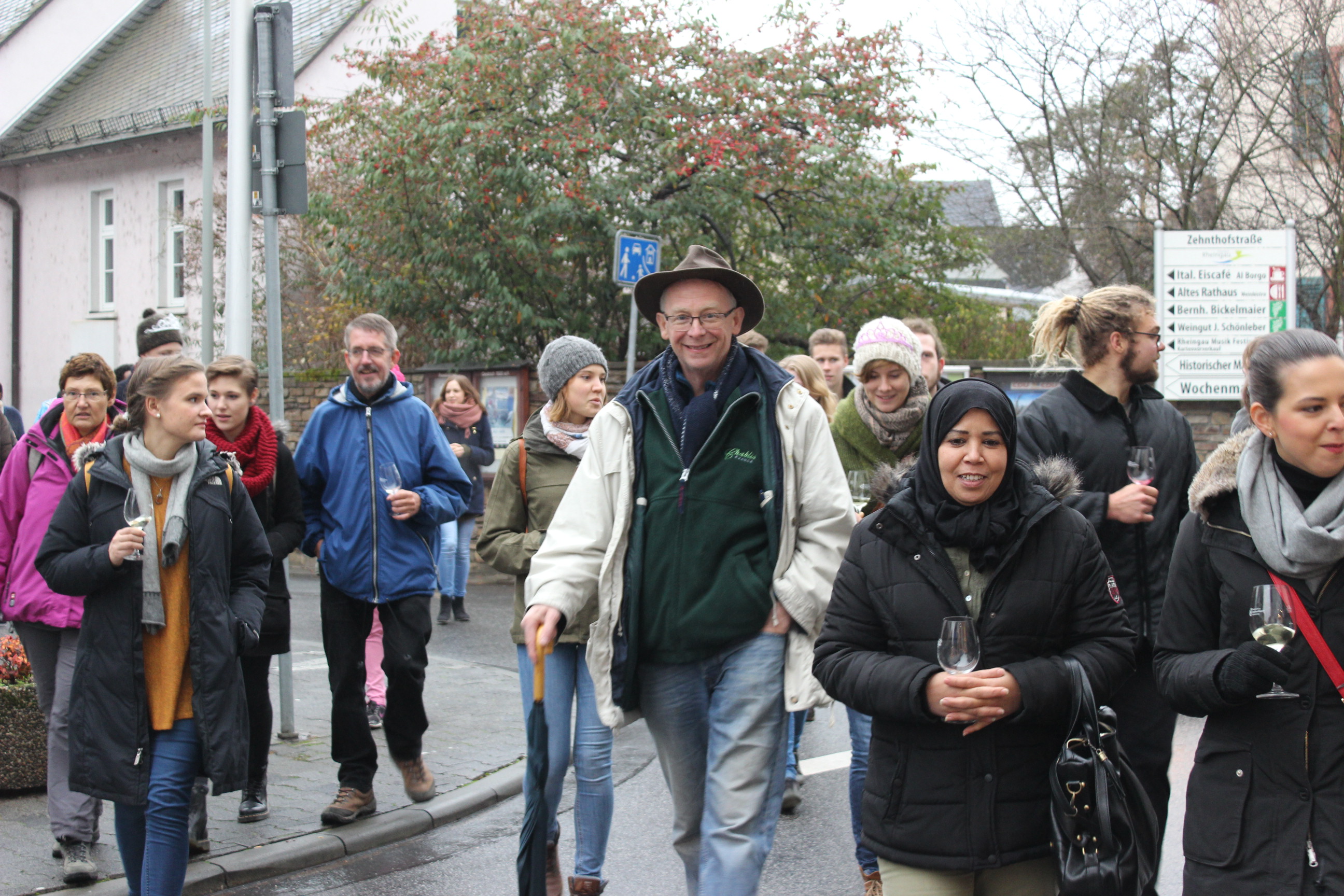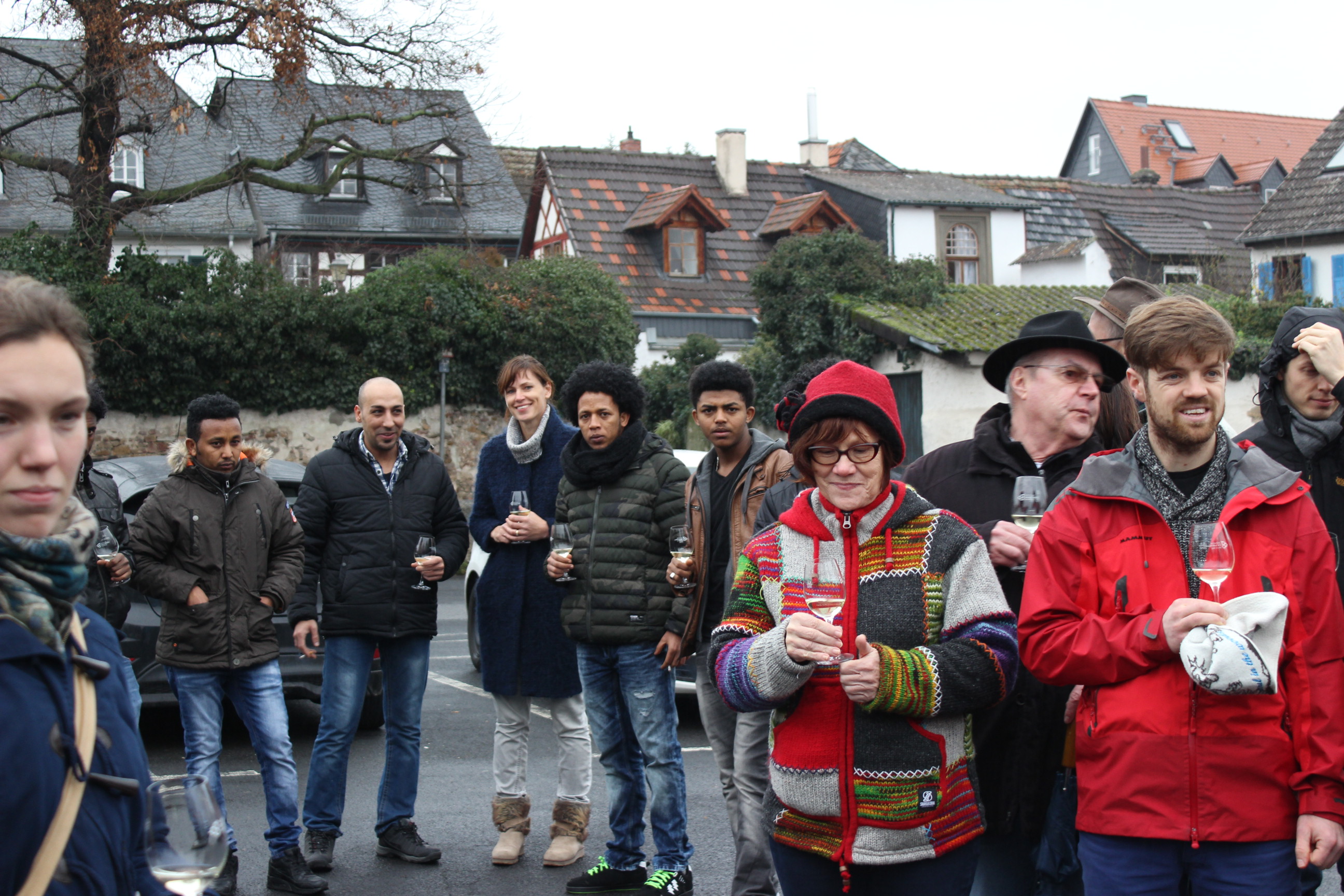 Eine Gruppe Geisenheimer Studenten veranstaltete im Dezember 2015 eine Weinwanderung um Östrich-Winkel, bei der eine Möglichkeit der Begegnung geschaffen werden sollte – es wurde ein voller Erfolg!